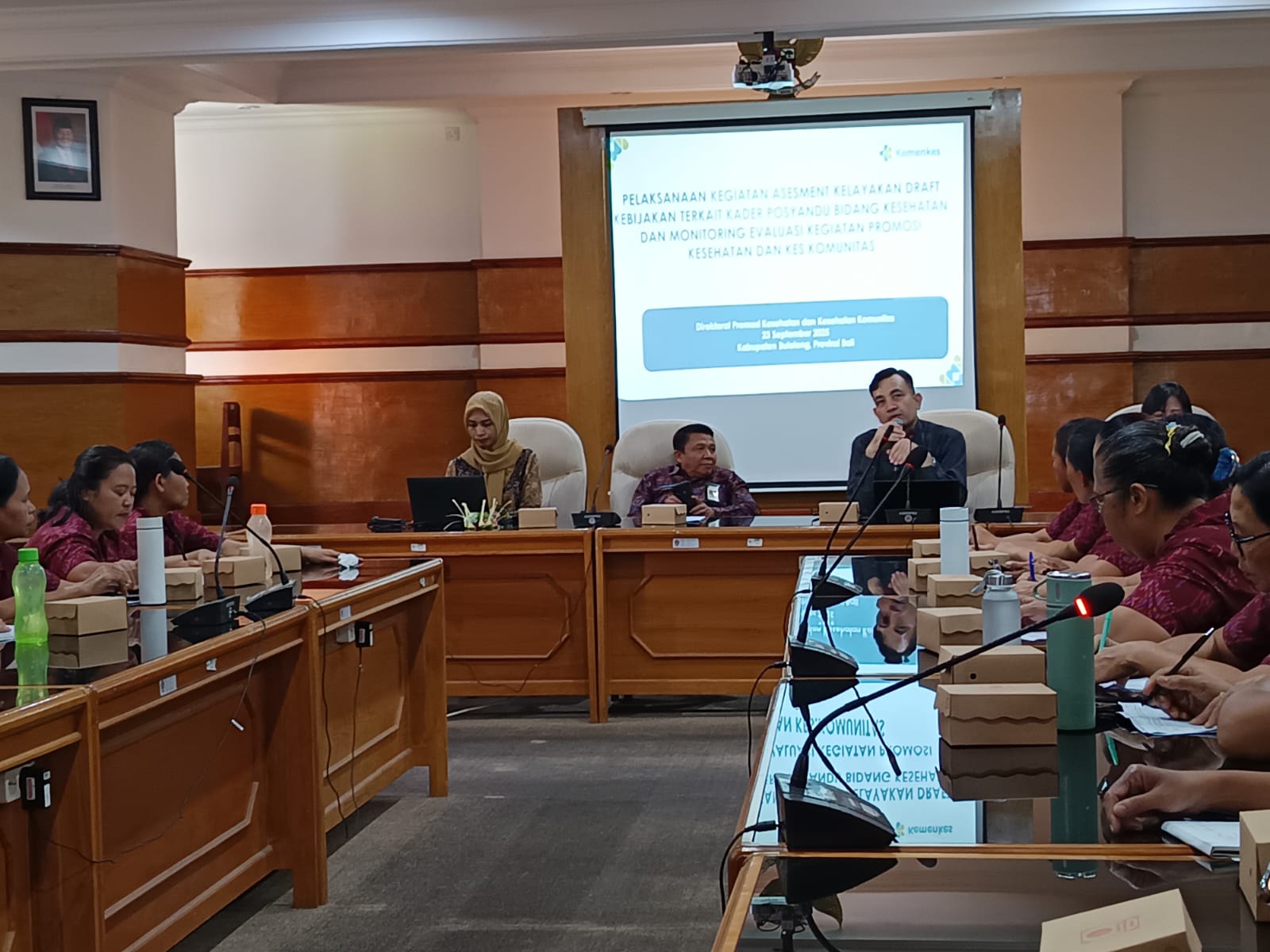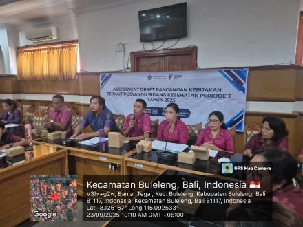 Pelaksanaan kegiatan Assesment kelayakan Draft Kebijakan terkait Kader Posyandu Bidang Kesehatan dan Monitoring Evaluasi kegiatan Promosi Kesehatan dan Kesehatan Komunitas kegiatan ini berlangsung di Gedung Unit IV Lantai 2 Kantor Bupati Buleleng pada hari Selasa 23 September 2025 pada pukul 09:00 wita. Dalam kegiatan ini Dinas Kesehatan Kabupaten Buleleng melalui Timker Promosi Kesehatan dan Kesehatan Komunitas Kementerian Kesehatan RI serta Dinas Kesehatan Propinsi Bali melaksanakan kegiatan ini.