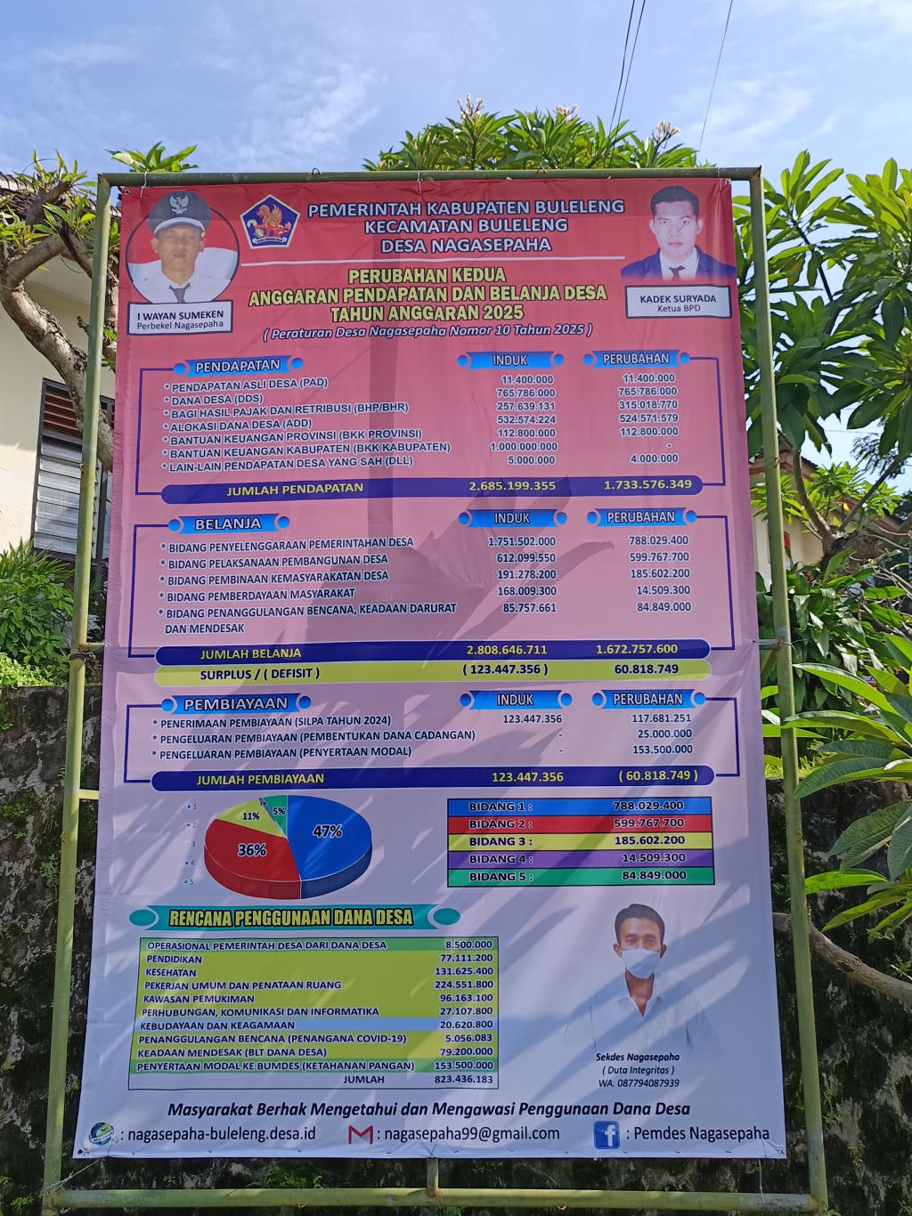 Pemerintah Desa Publikasikan bentuk Baliho di Papan Pengumuman tentang Perubahan Kedua Anggaran Pendapatan dan Belanja Desa Tahun 2025 ( Peraturan Desa Nagasepaha Nomor 10 Tahun 2025) bentuk Transfarasi Pemerintah Desa kepada masyarakat.